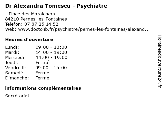 Termes de recherche pour Dr Alexandra Tomescu - Psychiatre:folie, alexandra, psychiatrique, dr, psychiatrie, psychiatre, tomescu |