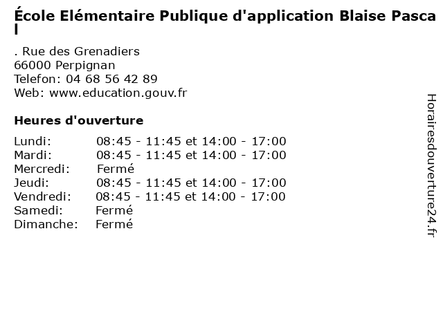 | Lundi | 08:45-11:45 et 14:00-17:00 |