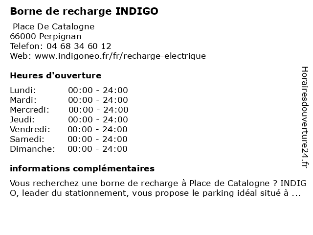 1 Parking Indigo Perpignan Catalogne (Distance: 0,00 km) Place De Catalogne, 66000 Perpignan borne de recharge pour véhicules électriques, catalogne, indigo, parking, perpignan 2 Parking Vélo Indigo Catalogne (Distance: 0,02 km) 1 Place De Catalogne, 66000 Perpignan borne de recharge pour véhicules électriques, catalogne, indigo, parking, vélo 3 Borne de recharge INDIGO (Distance: 54,52 km) 1 Cours Mirabeau, 11100 Narbonne borne, de, indigo, recharge 5 Parking Indigo Narbonne Halles (Distance: 54,57 km) 1 Cours Mirabeau, 11100 Narbonne borne de recharge pour véhicules électriques, halles, indigo, narbonne, parking 6 Aire Euro-Relais (Borne campings-car) (Distance: 7,63 km) - A9, 66600 Rivesaltes aire, borne, camping, campings, car, eau, euro, relais, service, stationnement, tourisme, vidange |