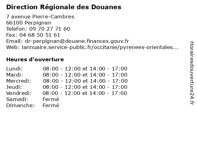 | Lundi | 08:00-12:00 et 14:00-17:00 |