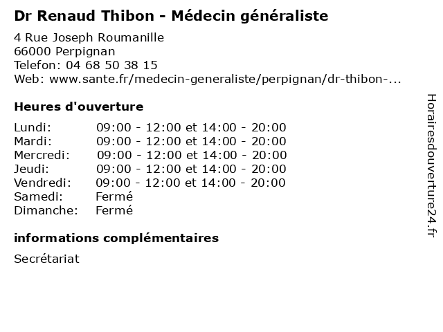 | Jeudi | 09:00-12:00 et 14:00-20:00 |