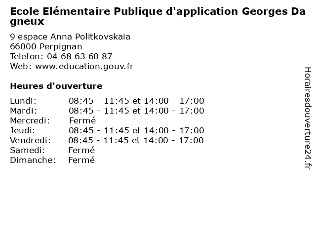 | Lundi | 08:45-11:45 et 14:00-17:00 |