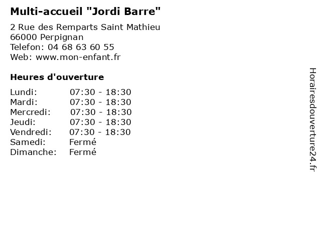 | Lundi | 07:30-18:30 |