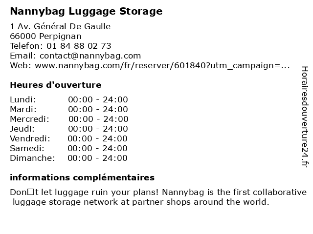 1 Nannybag Luggage Storage (Distance: 0,55 km) 13 Avenue Président Doumer, 66000 Perpignan luggage, nannybag, storage 2 Nannybag Luggage Storage (Distance: 0,78 km) 40 Boulevard Georges Clemenceau, 66000 Perpignan luggage, nannybag, storage 3 Nannybag Luggage Storage (Distance: 0,90 km) 22 Av. Du Boules, 66000 Perpignan luggage, nannybag, storage 4 Nannybag Luggage Storage (Distance: 0,90 km) 10 Rue Du Marché De Gros, 66000 Perpignan luggage, nannybag, storage 5 Nannybag Luggage Storage (Distance: 1,00 km) 29 Quai Sébastien Vauban, 66000 Perpignan luggage, nannybag, storage 6 Nannybag Luggage Storage (Distance: 1,32 km) 2 Rue Font Froide, 66000 Perpignan luggage, nannybag, storage |