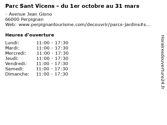 | Lundi | 11:00-17:30 |