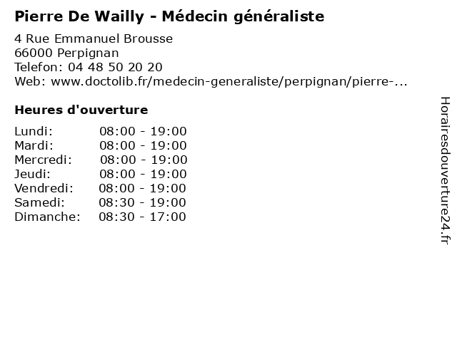 | Lundi | 08:00-19:00 |