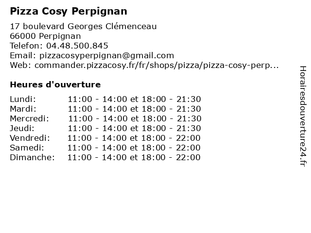 | Mardi | 11:00-14:00 et 18:00-21:30 |