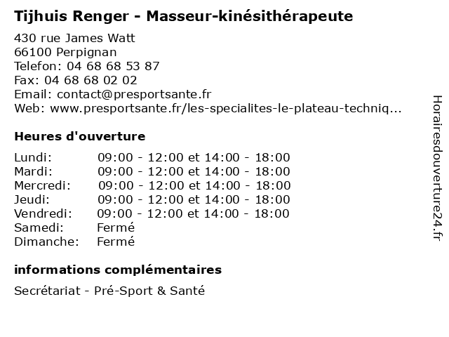 | Mardi | 09:00-12:00 et 14:00-18:00 |