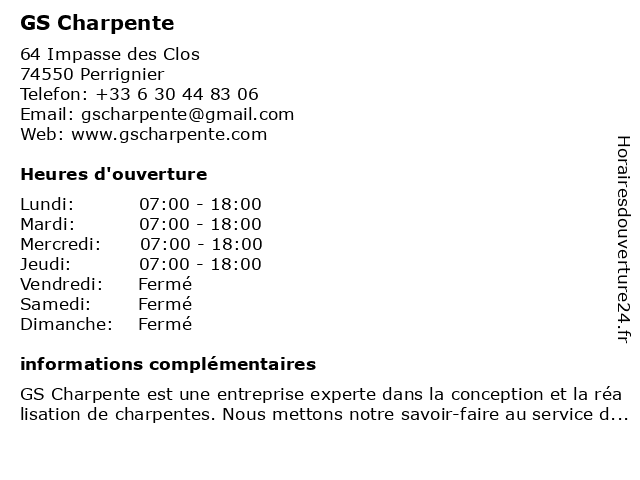 2 Breband Et Fils Charpente Menuiserie (Distance: 3,11 km) 90 Chemin de Bancet, 74890 Lully breband, charpente, et, fils, menuiserie 4 Charpente Construction Bois Bron Emmanuel SARL (Distance: 11,32 km) Chemin Rural de vers le Pré, 74200 Reyvroz bois, bron, charpente, construction, emmanuel, sarl 6 Maure Henri Naturel Charpente (Distance: 15,57 km) 1074 Route du Pont de la Tourne, 74490 Onnion charpente, henri, maure, naturel |