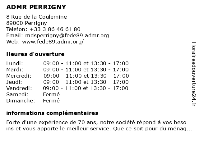 1 ADMR (Fédération de l'Yonne) (Distance: 4,20 km) 57 Avenue de la Tournelle, 89000 Auxerre admr, de, fédération, l'yonne 5 Association ADMR (Distance: 8,27 km) 1 Rue Porte d'en Bas, 89240 Chevannes admr, aide, association, jardinage repas, personne, référence 6 |