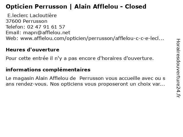 | Appeler Opticien Perrusson | Alain Afflelou - Closed | |