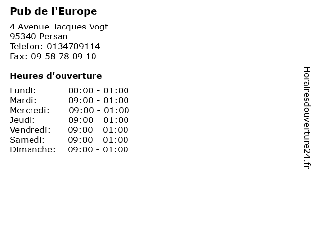 | Samedi | 09:00-01:00 |