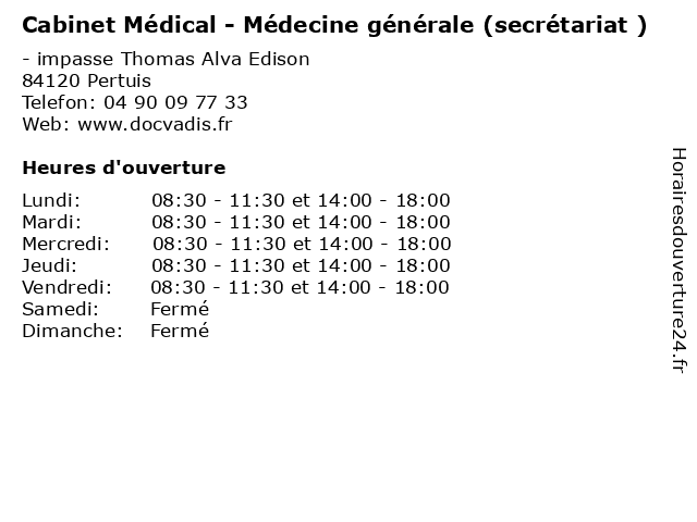 | Mercredi | 08:30-11:30 et 14:00-18:00 |