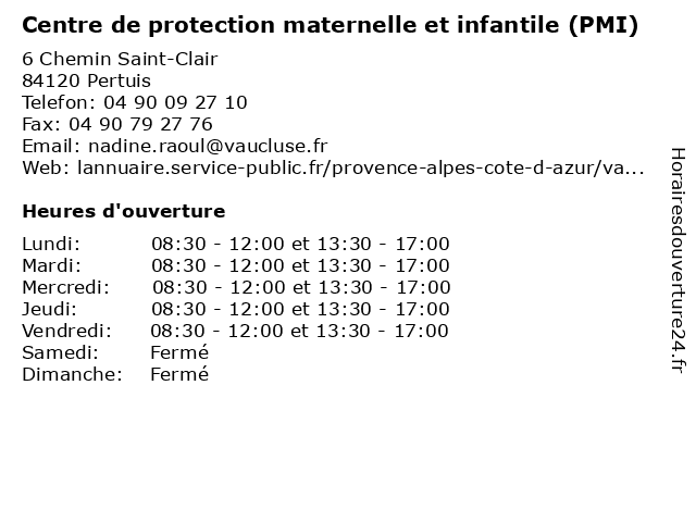 Lundi | 08:30-12:00 et 13:30-17:00 |