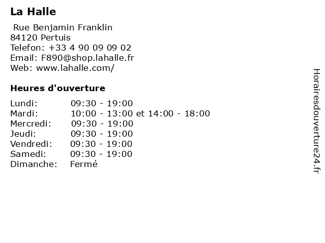 | Mardi | 10:00-13:00 et 14:00-18:00 |