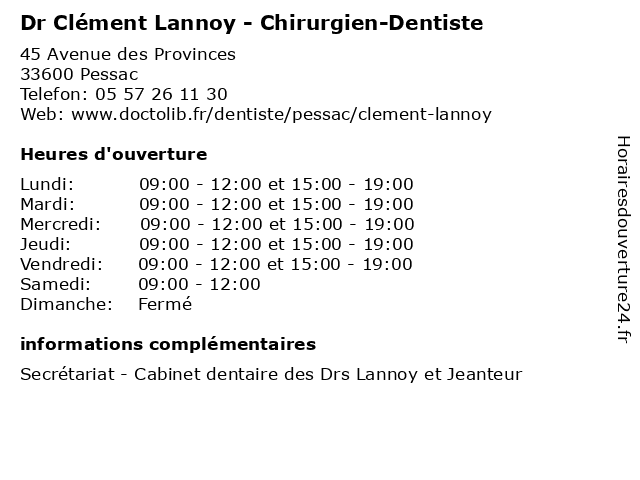 | Lundi | 09:00-12:00 et 15:00-19:00 |