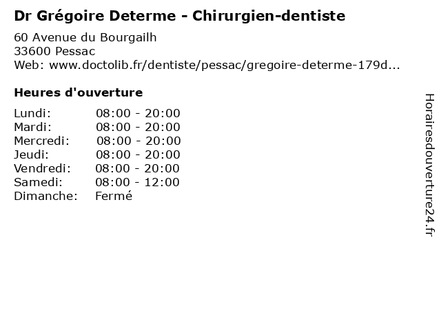 | Mercredi | 08:00-20:00 |