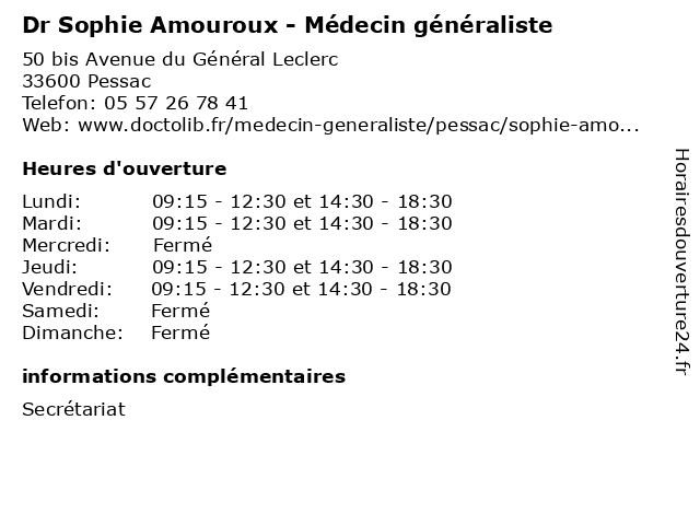 | Mardi | 09:15-12:30 et 14:30-18:30 |