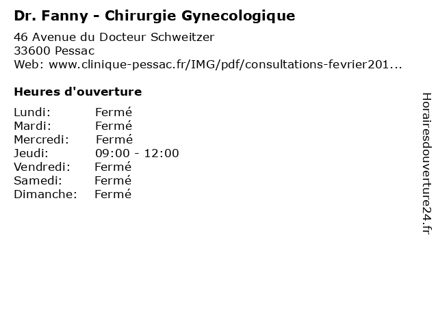 1 Dr. Francois Dubecq Princeteau - Chirurgie Gynecologique (Distance: 0,00 km) 46 Avenue du Docteur Schweitzer, 33600 Pessac chirurgie, docteur, dr., dubecq, francois, gynecologique, medecins, princeteau, sante 3 Belarra Fanny (Distance: 3,93 km) Ehpad Xavier Arnozan 33604, 33600 Pessac belarra, fanny, restaurants 5 La Pizz' à Fanny (Distance: 4,40 km) 5 avenue Lucien Lerousseau, 33130 Bègles chorizo, fanny, fromages, la, pizz', pizzas, pizzéria, restaurant 6 |