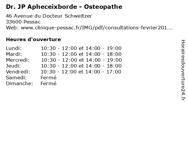 Termes de recherche pour Dr. JP Apheceixborde - Osteopathe:santé, jp, docteur, dr., médecins, ostéopathe, apheceixborde |