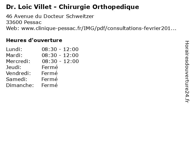 1 Dr. Pierre Conri - Chirurgie Orthopedique (Distance: 0,00 km) 46 Avenue du Docteur Schweitzer, 33600 Pessac chirurgie, conri, docteur, dr., medecins, orthopedique, pierre, sante 2 Bucaille Loic Pierre (Distance: 1,77 km) Aquimoove 1Er Etage Gauche, 33400 Talence bucaille, loic, pierre, restaurants 4 Monique Villet - Psychologue (Distance: 3,72 km) 137 Cours de l'Yser, 33800 Bordeaux monique, psy, psychiatre, psychologue, sante, soins, villet 5 Maître Loic Champeaux - Avocat (Distance: 4,18 km) 8 rue Paul Louis Lande, 33000 Bordeaux avocat, avocate, avocats, champeaux, civils, droits, juridiques, loic, maître 6 Pauthenet Loic Yves (Distance: 4,33 km) 62 Rue Bouffard, 33000 Bordeaux loic, pauthenet, restaurants, yves |
