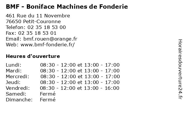 | Lundi | 08:30-12:00 et 13:00-17:00 |
