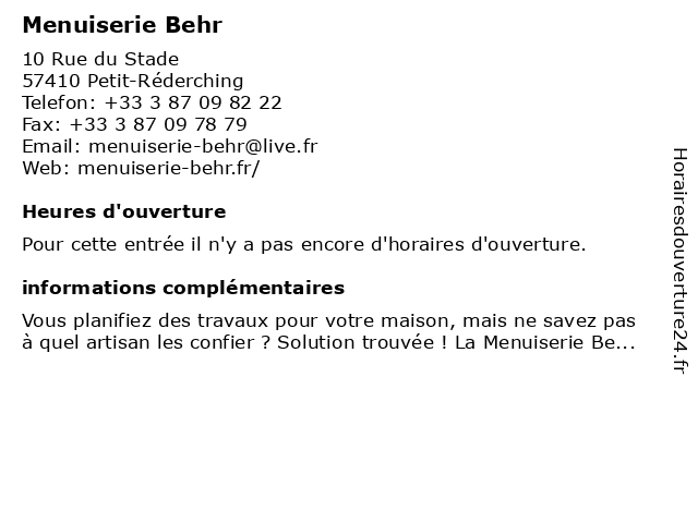 | Appeler Menuiserie Behr | |