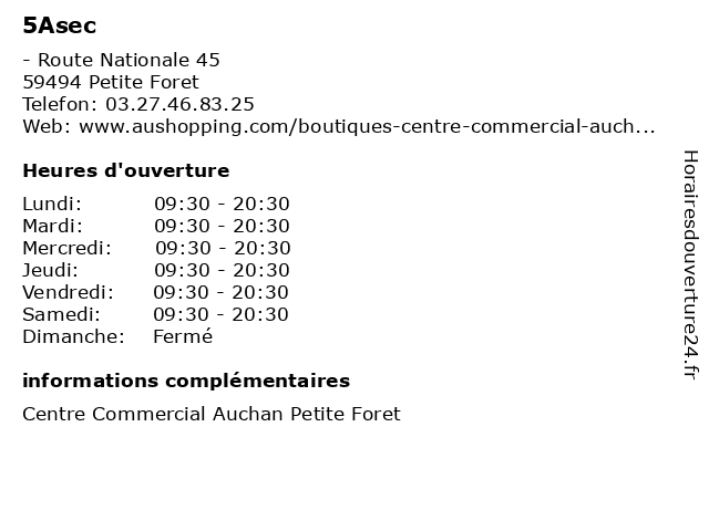Horaires d'ouverture |