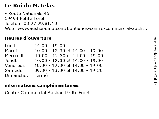 1 Le Roi du Matelas (Distance: 3,46 km) . Route Nationale 45, 59494 Petite Forêt cafe, chaussures, du, enfants, homme, hypermarche, le, matelas, mode femme, restaurant, roi, service 2 Le Roi Du Matelas Valenciennes (Distance: 0,18 km) Rue du 19 Mars 1962, 59494 Petite-Forêt du, le, matelas, roi, valenciennes 3 Le Roi Du Matelas La Sentinelle (Distance: 3,53 km) Rue Gambetta Prolongée, 59174 La Sentinelle du, la, le, matelas, roi, sentinelle 4 Les Experts Meubles Trith-Saint-Léger / Lanselle Mobilier (Distance: 3,52 km) Zone Activités les Poutrelles, 59125 Trith-Saint-Léger armoire, buffet, canapé, canapé convertible, canapé relax, chaise, commode, experts, fauteuil, fauteuil relax, lanselle, les, lit, literie, léger, matelas, meuble, meuble chambre à coucher, meuble de salle à manger, meubles, mobilier, rangement, saint, séjour, table, table basse, table de repas, trith, étagère 5 Le Roi du Matelas (Distance: 35,89 km) - Route Nationale 43, 62950 Noyelles-Godault du, d’accessoires, le, maison, marques de sommiers, matelas, roi 6 Literie 62 (Distance: 35,89 km) - Route Nationale 43, 62950 Noyelles-Godault 62, banquettes lits, chambres, literie, matelas et sommiers, oreillers et couettes, relaxation |