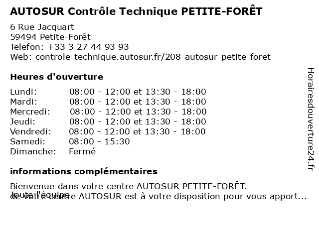 | Lundi | 08:00-12:00 et 13:30-18:00 |