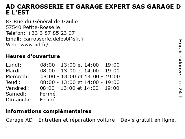 | Lundi | 08:00-13:00 et 14:00-19:00 |