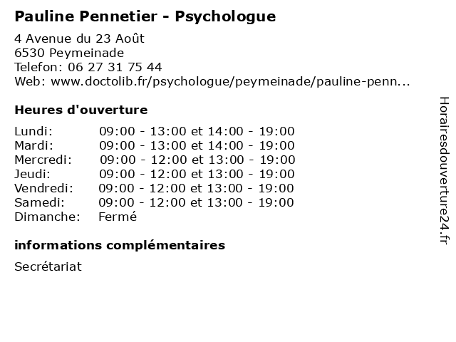 | Lundi | 09:00-13:00 et 14:00-19:00 |