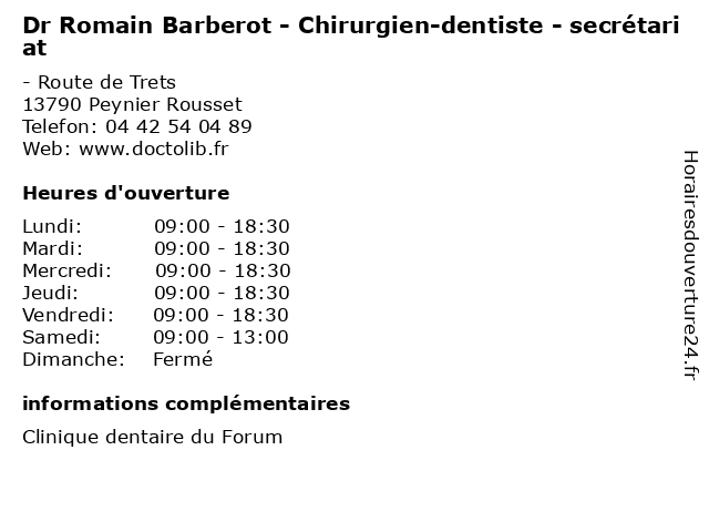 | Lundi | 09:00-18:30 |