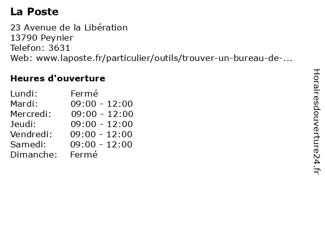 2 La Poste (Distance: 5,86 km) . Place de la Sainte-Baume, 13720 Belcodène agence, assurance, banque, banque postale, bureau de poste, chronopost, colis, courrier, dps, expéditions internationales, la, point, postale, poste, relais, timbres, téléphonie, ups, western union 3 La Poste (Distance: 7,55 km) - Place Auguste Barret, 13790 Châteauneuf-le-Rouge agence, assurance, banque, banque postale, bureau de poste, chronopost, colis, courrier, dps, expéditions internationales, la, point, postale, poste, relais, timbres, téléphonie, ups, western union 4 La Poste (Distance: 8,48 km) 1 Avenue du Pont, 13124 Peypin agence, assurance, banque, banque postale, bureau de poste, chronopost, colis, courrier, dps, expéditions internationales, la, point, postale, poste, relais, timbres, téléphonie, ups, western union 6 La Poste (Distance: 8,75 km) - Chemin du Cimetière, 13390 Auriol agence, assurance, banque, banque postale, bureau de poste, chronopost, colis, courrier, dps, expéditions internationales, la, point, postale, poste, relais, timbres, téléphonie, ups, western union |