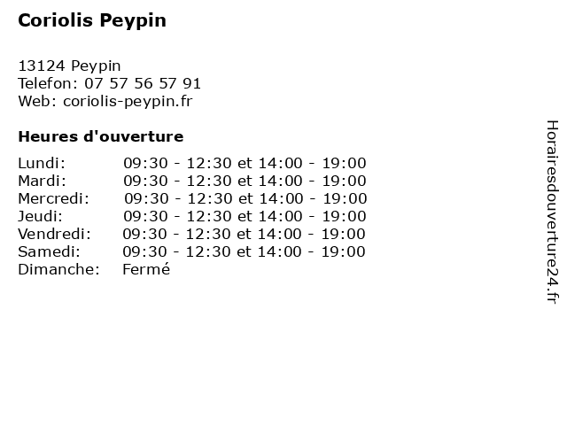 | Samedi | 09:30-12:30 et 14:00-19:00 |