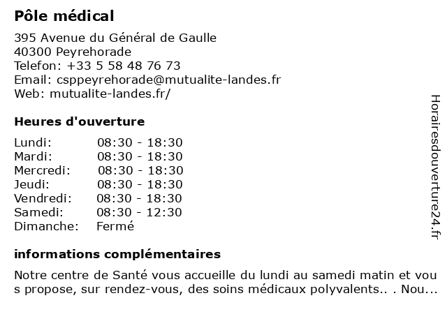 1 Clinique Vétérinaire de Peyrehorade (Biovet Santé Animale) (Distance: 0,23 km) 186 av. du Général de Gaulle, 40300 Peyrehorade animale, biovet, clinique, clinique vétérinaire, de, peyrehorade, santé, soins vétérinaires, vétérinaire 2 Audition Mutualiste (Distance: 0,40 km) 1500 Route de Bayonne, 40300 Peyrehorade accessoires, aides auditives, audioprothésiste, audition, mutualiste, santé 3 Centre de Santé Dentaire (Distance: 18,37 km) 29 Avenue Victor Hugo, 40100 Dax centre, de, dentaire, santé 5 Clinique Vétérinaire Bio'Vet Santé Animale (Distance: 18,43 km) 28 Route de Bayonne, 40230 Saint-Geours-de-Maremne animale, bio'vet, clinique, santé, vétérinaire 6 Centre de Santé Mentale infantile (Distance: 18,49 km) 1 Rue Labadie, 40100 Dax centre, de, infantile, mentale, santé |