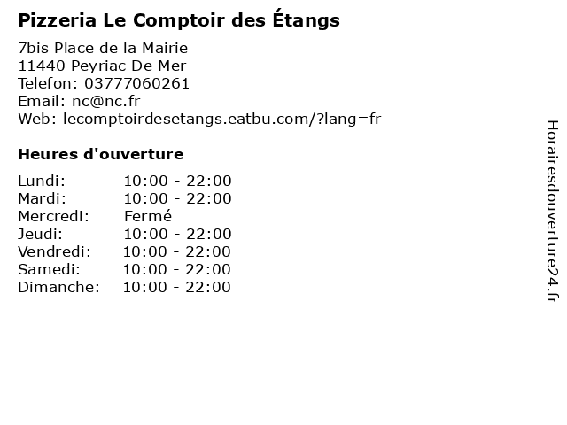 | Dimanche | 10:00-22:00 |