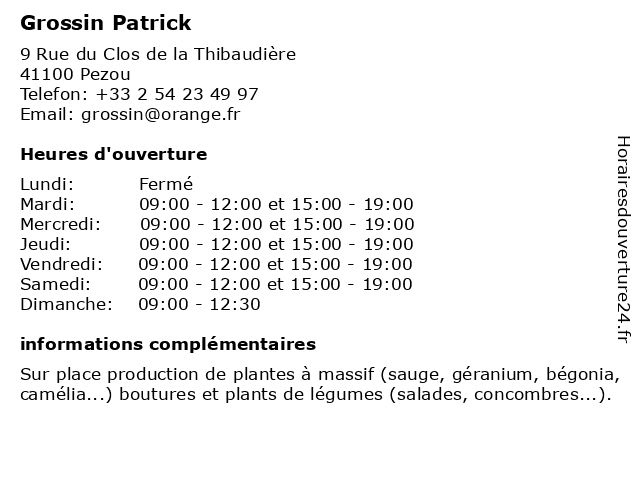 Jeudi | 09:00-12:00 et 15:00-19:00 |