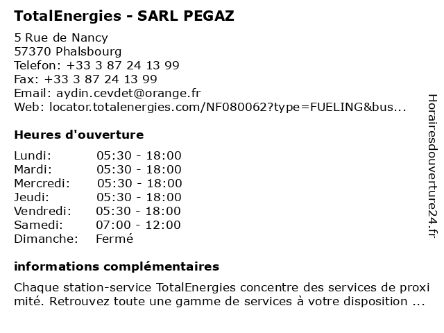 Termes de recherche pour TotalEnergies - SARL PEGAZ:sarl, total, gas station, station service, pegaz, tankstelle, totalenergies |