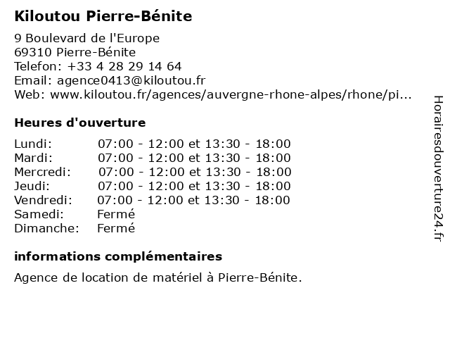 | 1 Kiloutou Pierre-Bénite (Distance: 0,04 km) 9 Boulevard de l'Europe, 69310 Oullins-Pierre-Bénite bénite, kiloutou, pierre 2 Kiloutou (Distance: 3,95 km) 192 avenue Francis de Pressensé, 69200 Venissieux kiloutou, location, magasins, matériels 6 |
