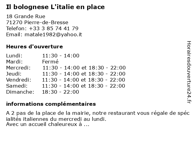 | Samedi | 11:30-14:00 et 18:30-22:00 |