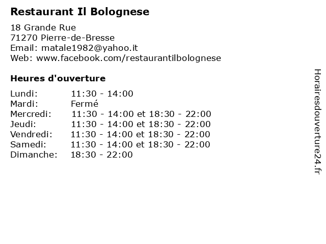 | Mercredi | 11:30-14:00 et 18:30-22:00 |
