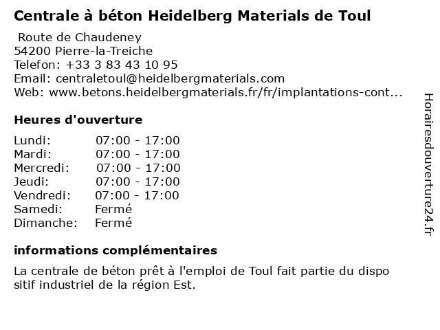 | 1 Carrière de granulats Heidelberg Materials de Pierre-la-Treiche (Distance: 2,24 km) L'Île aux Charmes, 54200 Chaudeney-sur-Moselle carrière, de, granulats, heidelberg, la, materials, pierre, treiche 2 TOUL ENROBES (Distance: 2,95 km) 724 Route De Toul, 54200 Chaudeney-Sur-Moselle constructeur, enrobes, toul 3 Boucherie La Centrale (Distance: 4,59 km) 1 Rue de Lattre de Tassigny, 54200 Toul boucherie, centrale, la 4 Cercle Succursale De Toul (Distance: 5,89 km) Ecrouves Quartier Fabvier, 54200 Ecrouves base, cercle, defense, nancy, restaurants, succursale, toul 6 La Centrale de Financement (Distance: 16,81 km) 138 rue André Bisiaux plateau de Haye, 54320 Maxeville centrale, crédit, de, financement, immobilier, la, prêt |