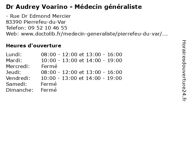 | Mardi | 10:00-13:00 et 14:00-19:00 |