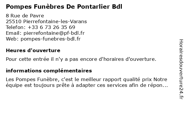 | Appeler Pompes Funèbres De Pontarlier Bdl | |