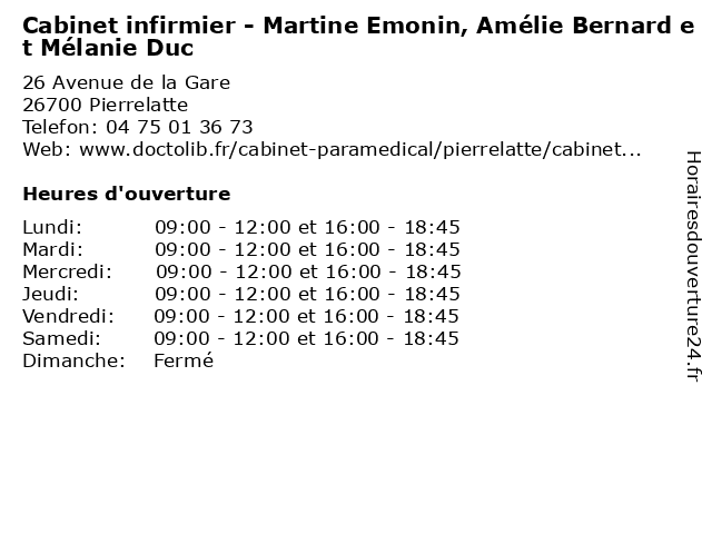 Termes de recherche pour Cabinet infirmier - Martine Emonin, Amélie Bernard et Mélanie Duc:et, de, duc, bernard, cabinet, amelie, medical, melanie, martine, médecins, docteurs, infirmier, emonin |