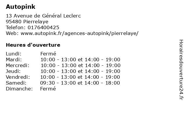 Mercredi | 10:00-13:00 et 14:00-19:00 |