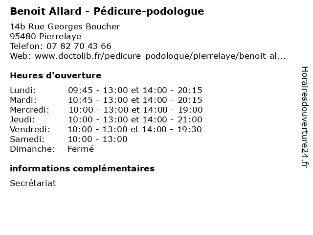 | Mercredi | 10:00-13:00 et 14:00-19:00 |