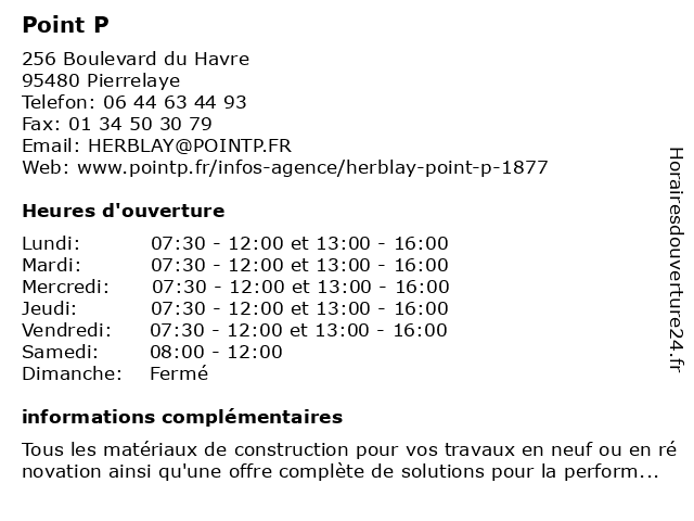 1 Point P (Distance: 5,36 km) 11 Rue de Paris, 5310 Saint-Ouen-l'Aumône aménagement, construction, equipement, matériaux, point 2 Point P (Distance: 6,20 km) 74 Route de Cormeilles, 78500 Sartrouville aménagement, construction, matériaux, point, point.p, quinçaillerie, équipement 3 Point P (Distance: 7,99 km) 35 Rue de Gode, 95100 Argenteuil aménagement, construction, equipement, matériaux, point 4 Point P (Distance: 10,04 km) 17 Rue du Président Salvador Allende, 95870 Bezons aménagement, construction, equipement, matériaux, point, point.p 5 Point P (Distance: 12,83 km) 701 Rue de la Reine Blanche, 78955 Carrières-sous-Poissy aménagement, construction, matériaux, point, point.p, quinçaillerie, équipement 6 Point P (Distance: 13,68 km) 6 Rue de la Grosse Pierre, 78540 Vernouillet aménagement, construction, matériaux, point, point.p, quinçaillerie, équipement |