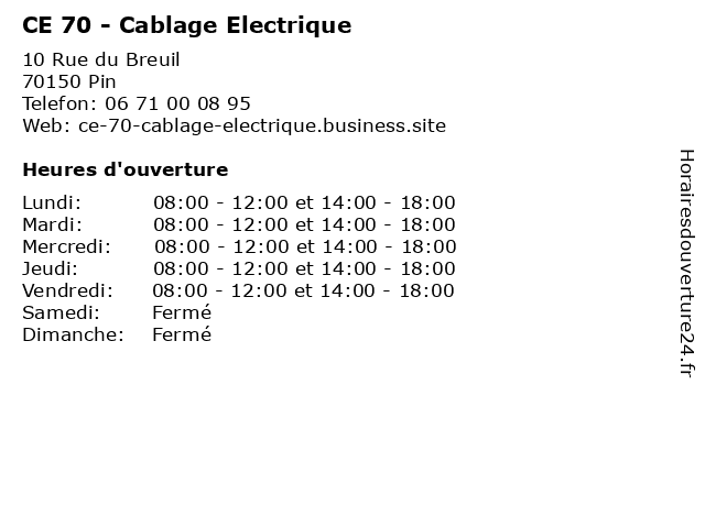 | Mercredi | 08:00-12:00 et 14:00-18:00 |